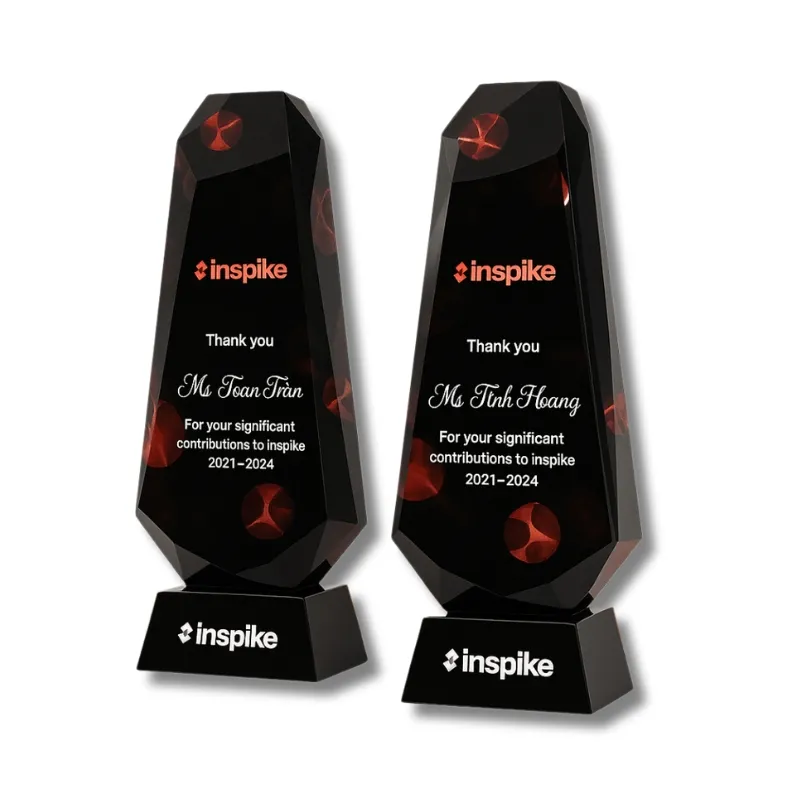 Đối với kiểu dáng thiết kế này sẽ cho phép khách hàng thoải mái lựa chọn các phương án in cúp pha lê sao cho phù hợp với các tập đoàn, công ty lớn vinh danh lãnh đạo cấp cao, nhân viên xuất sắc tại các lễ vinh danh, lễ tôn vinh.